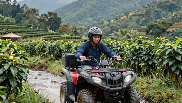 Located in a coffee plantation on a high mountain, surrounded by rivers, streams, and 100% natural beauty. The trail alternates between high and low hills, with rocks along the way.