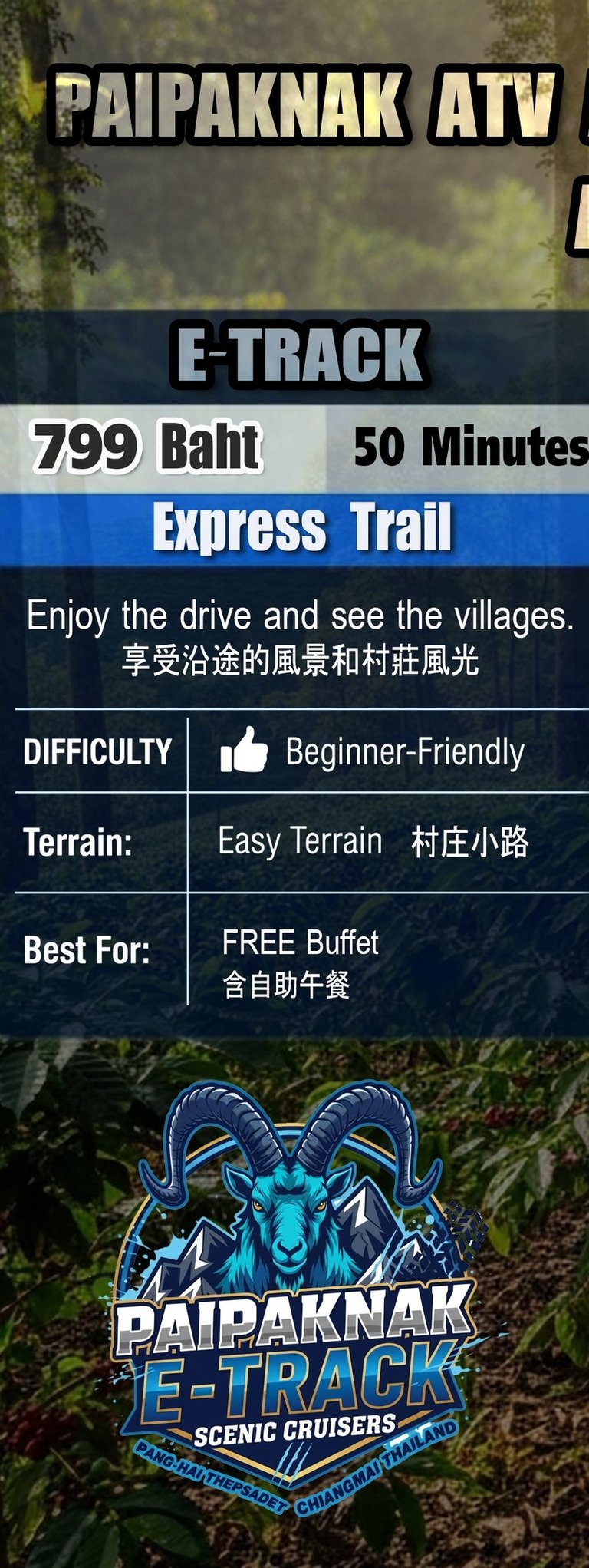 只需 50-60 分钟,即可领略 Thep Sadet 的美景。E-Track 快捷、轻松、舒适,是行程紧凑人士的理想之选。我们将带您直达最上镜的景点,让您无需长途跋涉即可捕捉壮丽景色。是记录美好瞬间并开启下一段旅程的完美方式。简单、安全、高效,带您体验 Thep Sadet 的精华所在。